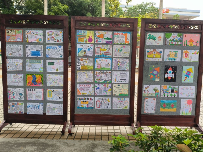 在黎曉榮副主任熱情洋溢的開幕式致辭中,開發(fā)區(qū)第二小學(xué)第四屆數(shù)學(xué)周活動(dòng)拉開了序幕。數(shù)學(xué)周活動(dòng)分為兩大板塊,設(shè)有基礎(chǔ)活動(dòng)和嘉年華活動(dòng)。其中基礎(chǔ)活動(dòng)以班級(jí)形式開展,各班學(xué)生以個(gè)人或合作創(chuàng)作的思維導(dǎo)圖、數(shù)學(xué)小報(bào)、數(shù)學(xué)拼圖……粉墨登場,老師們將各班同學(xué)精心設(shè)計(jì)的數(shù)學(xué)思維導(dǎo)圖、數(shù)學(xué)報(bào)等成果張貼在“數(shù)學(xué)優(yōu)秀作品展”中,校園里處處散發(fā)著數(shù)學(xué)味兒。