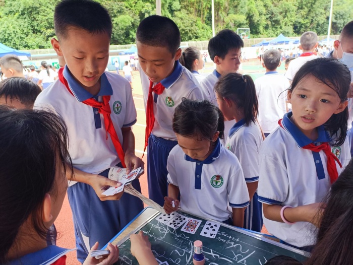 數(shù)學(xué)團(tuán)隊(duì)的老師們除了傳授數(shù)學(xué)知識(shí),還會(huì)為學(xué)生提供鍛煉數(shù)學(xué)思維和提高數(shù)學(xué)綜合能力的平臺(tái),激勵(lì)孩子們積極主動(dòng)地遨游數(shù)學(xué)王國、探索數(shù)學(xué)奧秘。其中,數(shù)學(xué)嘉年華活動(dòng)便是一個(gè)“玩轉(zhuǎn)”數(shù)學(xué)的大舞臺(tái),也是一年中孩子們最熱烈追捧的活動(dòng)之一。老師們精心策劃,認(rèn)真積極籌備,各式各樣的數(shù)學(xué)游戲攤位拔地而起,“24點(diǎn)對(duì)抗賽、數(shù)獨(dú)合作、數(shù)學(xué)燈謎、數(shù)字華容道、數(shù)30、數(shù)字行棋……”攤位前,人潮洶涌,孩子們有序地排隊(duì)、焦急地等待、熱情地參與,活動(dòng)場面熱鬧非凡?;顒?dòng)中,學(xué)生們深刻體會(huì)到數(shù)學(xué)學(xué)習(xí)不僅發(fā)生在課堂上,更存在于課堂之外,在生活的方方面面中。