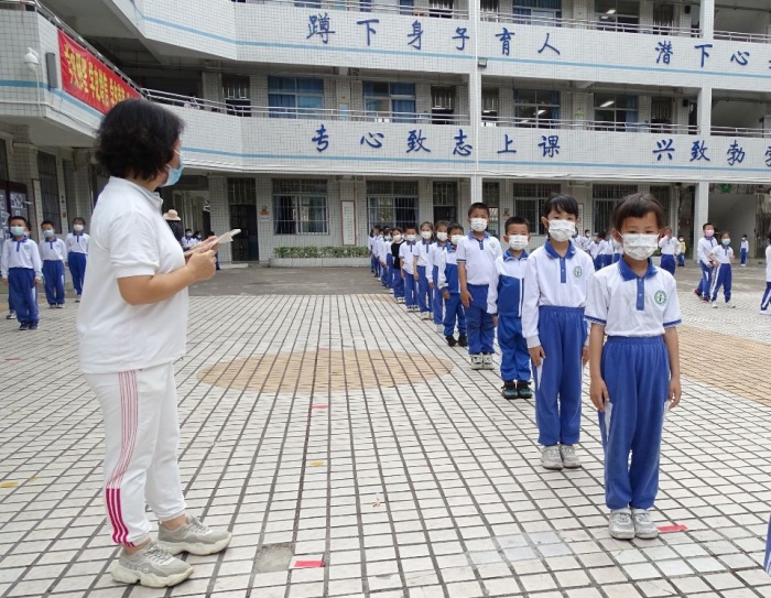接到通知后,班主任馬上做好班級學(xué)生信息的統(tǒng)計(jì)摸排工作,收集學(xué)生葵花碼,并提前按序預(yù)演,按序排列受檢隊(duì)伍。黨員教師志愿者提前在校內(nèi)設(shè)置核酸檢測采樣點(diǎn),布置場地、做好消毒,后勤人員張貼指示路線,各部門之間有序協(xié)調(diào),密切配合。