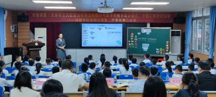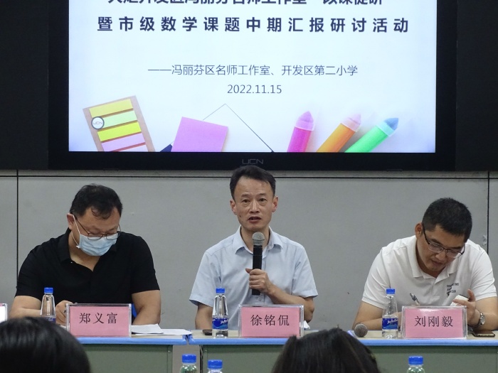 “教而不研則淺,研而不教則空。”教育要發(fā)展,科研必先行。為進一步推進教育科研工作,理清研究思路,保證課題研究的順利推進,2022年11月15日上午,火炬開發(fā)區(qū)馮麗芬名師工作室“以課促研”暨市級數學課題中期匯報研討活動在開發(fā)區(qū)第二小學綜合電教室隆重舉行。省名師、正高級教師徐銘侃校長、鄭義富校長,區(qū)教育事務指導中心教研部劉剛毅校長擔任本次中期匯報的指導專家,出席本次活動的領導有開發(fā)區(qū)教育事務指導中心張立超副校長、開發(fā)區(qū)第二小學周瑞珍校長。此外,出席本次活動的還有課題組成員、馮麗芬工作室成員、開發(fā)區(qū)兄弟學校的部分數學老師以及開發(fā)區(qū)第二小學全體數學老師。