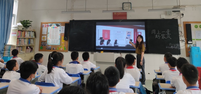 為深入學(xué)習(xí)貫徹習(xí)近平新時(shí)代中國(guó)特色社會(huì)主義思想,認(rèn)真落實(shí)習(xí)近平總書記關(guān)于注重家庭家教家風(fēng)建設(shè)的重要指示精神,中共廣東省直屬機(jī)關(guān)工作委員會(huì)、廣東省精神文明建設(shè)辦公室、廣東省婦女聯(lián)合會(huì)聯(lián)合主辦“喜迎二十大,傳承好家風(fēng)”——廣東省家庭家教家風(fēng)展。開發(fā)區(qū)第二小學(xué)積極參與到活動(dòng)中,2022年10月31日,學(xué)校開展“同上一堂好家風(fēng)課”活動(dòng)。