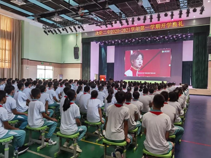 秋高氣爽,碩果飄香,又是一年開(kāi)學(xué)季。2020年9月1日上午8:30分,火炬二中全體師生在田徑場(chǎng)上莊嚴(yán)列隊(duì),隆重舉行新學(xué)期開(kāi)學(xué)典禮暨升旗儀式。伴隨著雄壯的國(guó)歌聲,全體師生行注目禮,少先隊(duì)員敬隊(duì)禮。
