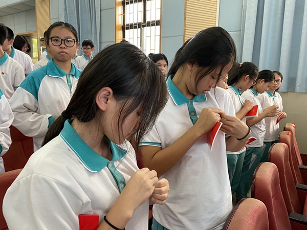 為慶祝建黨99周年,火炬二中于6月29日下午舉行了新團員入團儀式暨少先隊離隊儀式,通過“集體離隊”等學(xué)生自我教育的活動形式,幫助學(xué)生邁好“青春第一步”,“扣好人生中第一顆扣子”,從而使學(xué)生明確將要肩負(fù)的歷史和社會責(zé)任,培養(yǎng)開拓進(jìn)取、奮發(fā)向上的拼搏精神,激發(fā)學(xué)生熱愛共產(chǎn)黨、熱愛共青團,熱愛少先隊的思想情感。