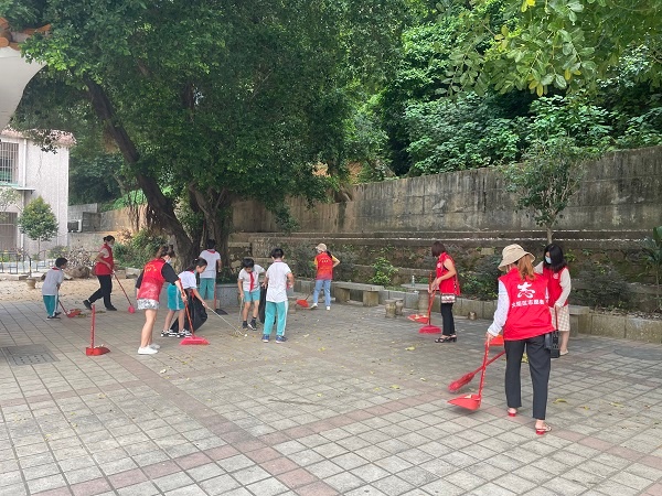 身穿紅馬甲的志愿者及佩戴紅領(lǐng)巾的孩子們成為了一道最靚麗的風(fēng)景。經(jīng)過(guò)近一個(gè)小時(shí)熱火朝天的戰(zhàn)斗,志愿者們將校園周邊一帶打掃得干干凈凈,煥然一新。社區(qū)的居民看到了這么多志愿者在義務(wù)打掃衛(wèi)生,紛紛被他們的行為所感動(dòng),向他們伸出了大拇指。