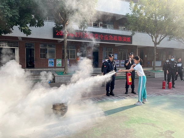 接著,中山市堅(jiān)衛(wèi)安保公司消防人員給全校師生普及了消防安全知識(shí),并現(xiàn)場(chǎng)演示了滅火器的使用方法。在安保人員的指導(dǎo)下,師生通過(guò)“一搖,二拔,三對(duì),四壓”的口訣,進(jìn)行了滅火實(shí)操及高壓水槍的使用,大大提高了處置突發(fā)火情的能力。