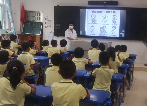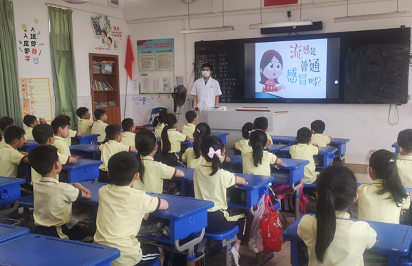 近期雨水較多,高溫反復,正是流感的高發(fā)期。為普及健康知識,提高少年兒童疾病預防的意識和能力,切實做好流感的防控工作,避免流感在校園集體爆發(fā),2022年6月17日,火炬開發(fā)區(qū)第三小學邀請了社區(qū)衛(wèi)生站的熊英恒醫(yī)生到校為師生開展了“預防流感”的健康知識講座。