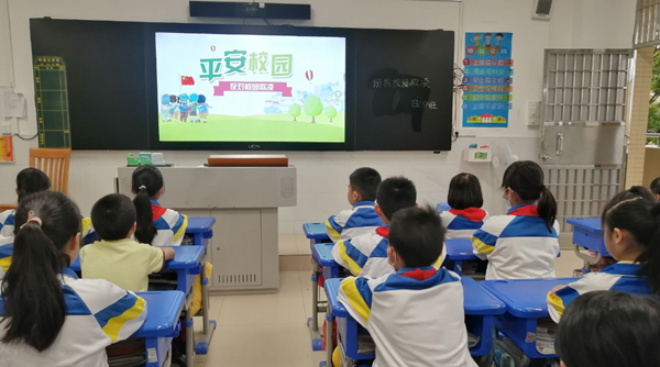 班會課上,各班班主任帶領(lǐng)同學(xué)們觀看了“防校園欺凌”的視頻,視屏通過模擬現(xiàn)場和動畫的方式,從“什么是校園欺凌”“哪些行為屬于校園欺凌”“校園欺凌會造成什么危害”“假如遭遇校園欺凌該如何處理”等方面,講解了有關(guān)校園欺凌、校園暴力的知識。