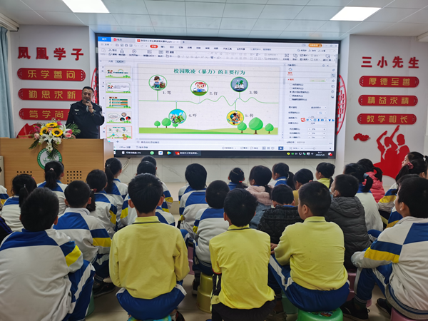 為全面落實國務(wù)院教育督導(dǎo)委員會辦公室《關(guān)于開展校園欺凌專項治理的通知》和廣東省教育廳《廣東省教育廳等十三部門關(guān)于加強中小學(xué)生欺凌綜合治理方案的實施辦法(試行)》的文件精神,預(yù)防和杜絕小學(xué)生校園欺凌,增強學(xué)生法律意識,規(guī)范學(xué)生行為,促進學(xué)生身心健康。火炬開發(fā)區(qū)第三小學(xué)于2022年1月4日早上,利用晨會的時間,特邀三小法制輔導(dǎo)員、濠頭派出所劉建國警官到校為學(xué)生進行預(yù)防校園欺凌專題教育活動。