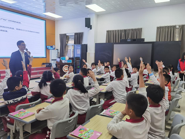 活動過程中,宣講老師崔遠良通過“現(xiàn)場授課+問答互動”課堂形式,向同學(xué)們講解了什么是新能源、與傳統(tǒng)能源相比、新能源有什么優(yōu)點、新能源怎么利用等方面的電力知識,使同學(xué)們了解到新能源的類型、應(yīng)用和未來的前景,加深對我國新能源知識的認(rèn)識?;顒又羞€設(shè)置了新能源知識有獎問答互動環(huán)節(jié),學(xué)生們踴躍舉手發(fā)言,爭相參與搶答,課堂氣氛熱烈。