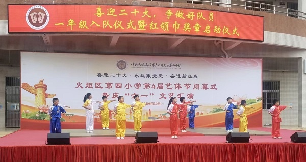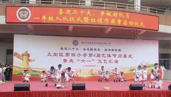 火炬區(qū)第四小學第四屆藝體節(jié)”閉幕式暨“喜迎二十大?永遠跟黨走?奮進新征程”主題文藝匯演由兩個篇章組成,分為童心向黨篇和強國筑夢篇。