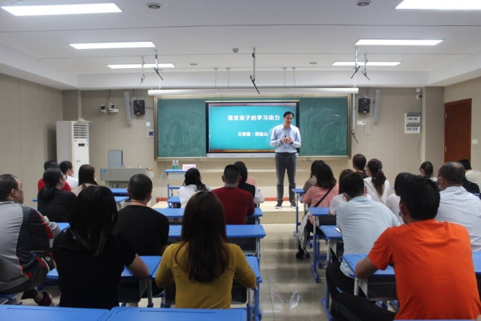 3月23日晚,首先由中山市家庭教育指導(dǎo)中心教師、國家二級(jí)心理咨詢師、全國家庭教育高級(jí)指導(dǎo)師鄭金山教授以《激發(fā)孩子的學(xué)習(xí)動(dòng)力》為主題,和家長們分享、探討了如何激發(fā)孩子的學(xué)習(xí)動(dòng)力。鄭教授從指引家長走出學(xué)習(xí)認(rèn)識(shí)的誤區(qū),揭開學(xué)生不愛學(xué)習(xí)的真相開始,與家長們愉快交流。鄭教授指出,孩子學(xué)習(xí)內(nèi)驅(qū)力有“三要素”,即歸屬感、勝任感和自主感。培養(yǎng)孩子們的自尊心、責(zé)任心、自信心、上進(jìn)心、自控力、意志力,把學(xué)習(xí)的主動(dòng)權(quán)歸還給孩子們,讓孩子們獲得學(xué)習(xí)的主權(quán),體驗(yàn)學(xué)習(xí)的樂趣是關(guān)鍵。
