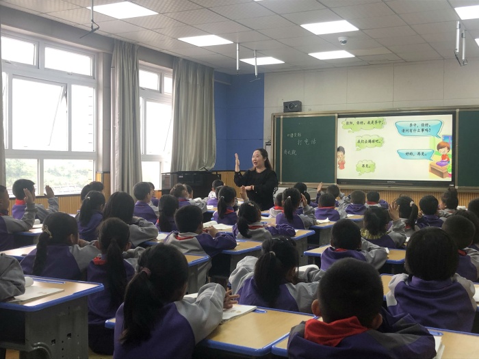 6月10日,李晶老師展示了一節(jié)一年級(jí)口語交際示范課《打電話》。李老師循循善誘,從實(shí)際生活入手,鼓勵(lì)學(xué)生上臺(tái)扮演打電話。根據(jù)學(xué)生在給陌生人打電話時(shí)對(duì)注意事項(xiàng)的處理,李老師首先安排學(xué)生進(jìn)行評(píng)價(jià),充分體現(xiàn)了以學(xué)生為主體的課堂教學(xué)模式。 6月13日,黃玲老師執(zhí)教了一節(jié)人音版一年級(jí)音樂教唱課《火車開啦》。課前的節(jié)奏練習(xí)瞬間全面激發(fā)了學(xué)生的學(xué)習(xí)情緒。然后,以端午節(jié)假期游玩為主題的師生互動(dòng)創(chuàng)設(shè)了良好的課堂氛圍,再有效利用多媒體技術(shù),使歌曲的教學(xué)、模仿、律動(dòng)與游戲渾然一體,成功構(gòu)建了和諧美好的音樂課堂。