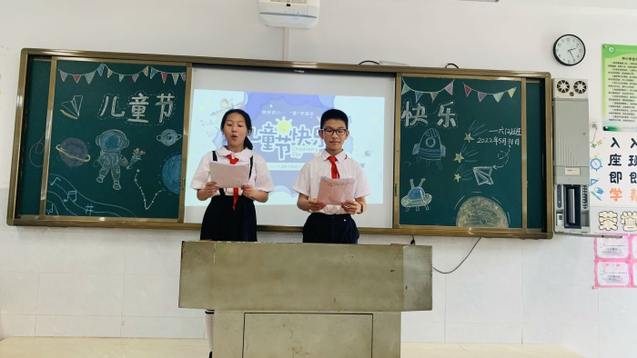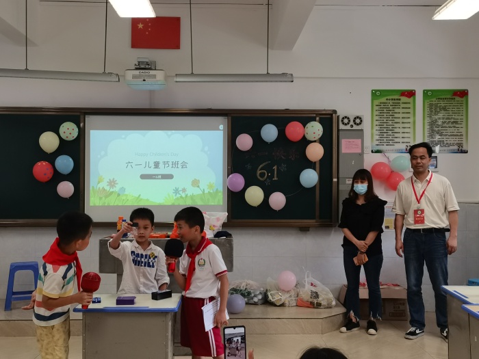 5月31日中午,每個班的宣傳組都絞盡腦汁布置教室。下午2時30分,校園里興高采烈,每個班級都在自主開展六一迷你派對、DIY文藝匯演等。參與活動的除了學生和正、副班主任,相應的落級行政逐班逐級地送上學校的“六一禮包”,現(xiàn)場附贈充滿能量的節(jié)目點贊和溫暖的節(jié)日問候與祝福。