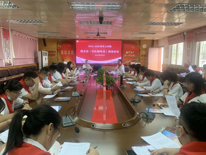 9月9日上午,在二至六年級班主任(中隊(duì)輔導(dǎo)員)培訓(xùn)會議上,黃玲主任向二至六年級的中隊(duì)輔導(dǎo)員講述新學(xué)期少先隊(duì)關(guān)于紅領(lǐng)巾爭章活動的手冊和實(shí)施方案,期待更多隊(duì)員們積極參與爭章活動。黃主任要求:新學(xué)期中隊(duì)輔導(dǎo)員們要繼續(xù)做好防溺水安全教育,節(jié)假日安全提醒,開展好德育工作,上好每一節(jié)隊(duì)課。