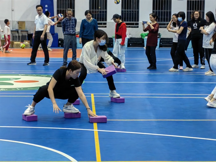 本次競賽活動(dòng)由杜金龍老師主持。杜老師首先詳細(xì)地宣布活動(dòng)規(guī)則,然后以 “教練說”和“老師做”的小游戲點(diǎn)燃了活動(dòng)的氛圍。“杜老師說”活動(dòng)口令,老師們聚精會(huì)神地聽口令,做動(dòng)作,既緊張又有趣!