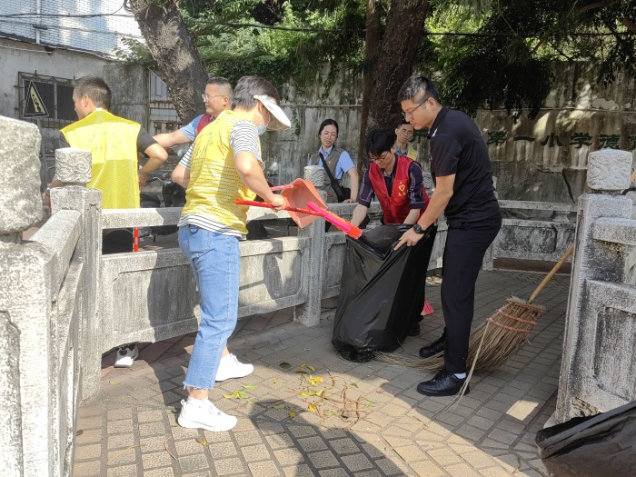 最后,在第一小學(xué)黨支部書記蔡長(zhǎng)青同志的帶領(lǐng)下,學(xué)校黨員代表與各位退役軍人一同來(lái)到學(xué)校南面的蔡北華紀(jì)念亭進(jìn)行瞻仰紀(jì)念和衛(wèi)生清潔。蔡北華為火炬開發(fā)區(qū)張家邊村人,民國(guó)24年(1935)參加革命并加入中國(guó)共產(chǎn)黨,曾任中共上海市委統(tǒng)戰(zhàn)部副部長(zhǎng)以及上海市人民政府第八辦公室副主任等。大家在衛(wèi)生清掃活動(dòng)期間,又重溫了蔡北華先生的光輝事跡,感受到革命先輩那崇高的信仰與濃濃的家園情懷。
