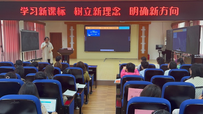 梁老師深入研究新課程標(biāo)準(zhǔn),從專業(yè)角度出發(fā),對(duì)新課程標(biāo)準(zhǔn)進(jìn)行了既科學(xué)又接地氣的詮釋,把新課程標(biāo)準(zhǔn)簡(jiǎn)化為“四四三三二”幾個(gè)數(shù)字,讓老師們快速把握課程標(biāo)準(zhǔn)的重要內(nèi)容,深讀簡(jiǎn)出,意蘊(yùn)深厚。隨后,梁雪菊老師結(jié)合多種文體、多種課型,通過實(shí)際的教學(xué)案例向在場(chǎng)的老師們解析學(xué)習(xí)任務(wù)群的要求和操作要領(lǐng),引導(dǎo)老師們?cè)谌粘=虒W(xué)中如何落實(shí)學(xué)習(xí)任務(wù)群,從而帶領(lǐng)學(xué)生進(jìn)行更深層次的學(xué)習(xí)。從梁老師深入淺出的講解中,老師們進(jìn)一步領(lǐng)悟了新課標(biāo)的精髓,做到心中有“標(biāo)準(zhǔn)”,及時(shí)更新自己的教學(xué)理念。