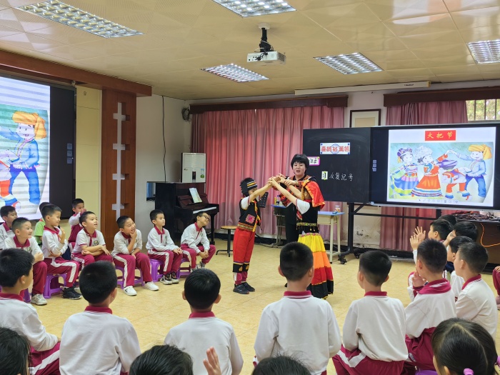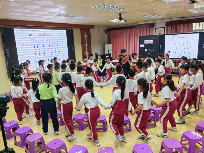 二年級(jí)(6)班的同學(xué)們?cè)谏虼好防蠋煹慕M織引導(dǎo)下,帶來了一堂充滿少數(shù)民族特色的音樂課——《喜鵲鉆籬笆》。沈老師上了一節(jié)融知識(shí)性、觀賞性、趣味性為一體的音樂課。課堂中,沈老師用自己的家鄉(xiāng)(貴州)為開端,以介紹彝族引入課題,帶領(lǐng)學(xué)生打節(jié)拍讀歌詞,這一環(huán)節(jié),瞬間拉近了與學(xué)生的距離,再通過結(jié)合音樂,創(chuàng)設(shè)情境,讓孩子們逐漸熟悉了歌曲《喜鵲鉆籬笆》。并學(xué)習(xí)了彝族達(dá)體舞,學(xué)生們圍成圈,手拉手,隨著音樂邊唱邊跳邊游戲。沈老師的親和力以及感染力讓學(xué)生充滿熱情、讓整個(gè)課堂充滿活力,將整個(gè)音樂教研活動(dòng)推向了高潮!讓我們感受到了音樂的樂,更是快樂的樂。整節(jié)課課堂節(jié)奏松弛有度、內(nèi)容重點(diǎn)突出,學(xué)習(xí)內(nèi)容安排和學(xué)習(xí)環(huán)節(jié)設(shè)計(jì)層層推進(jìn),整個(gè)課堂兼具深度與廣度,有效地激發(fā)了學(xué)生在課堂的活力。