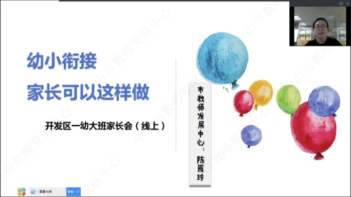 幼小銜接是幼兒從學(xué)前期向?qū)W齡期發(fā)展的過渡時(shí)期,也是幼兒心理發(fā)展的一個(gè)非常重要的轉(zhuǎn)折期。為了緩解大班家長面對(duì)幼兒“幼小銜接”的焦慮不安,科學(xué)合理地幫助幼兒做好上小學(xué)的準(zhǔn)備,火炬開發(fā)區(qū)第一幼兒園于2022年3月17日晚上特邀中山市教師發(fā)展中心教師培訓(xùn)部副部長陳雁玲博士為廣大家長開展主題為《幼小銜接——家長可以這樣做》的線上專題講座。