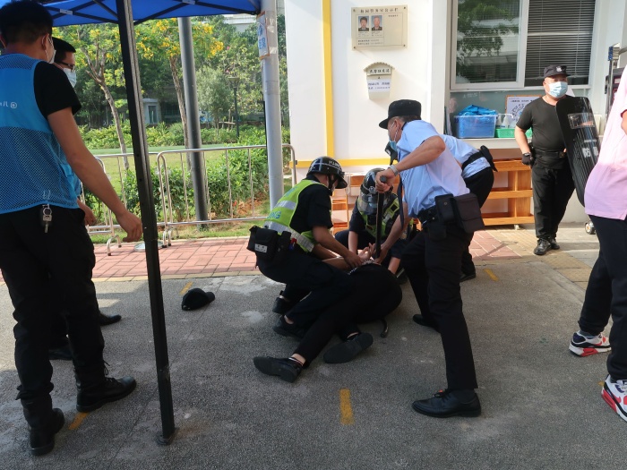 此次演練在全園幼兒和教師中展開,在駐校民警協(xié)助指導(dǎo)下,由安保公司人員假扮“歹徒”并手持兇器強(qiáng)行翻墻進(jìn)入幼兒園。幼兒園保安隊(duì)發(fā)現(xiàn)異常情況后立即啟動(dòng)報(bào)警系統(tǒng),并采取有針對(duì)性防暴力事件的各種措施,拿起鋼叉、鐵棍等勇敢地與“歹徒”進(jìn)行搏斗。各班老師組織正在操場(chǎng)上游戲的小朋友快速有序地就近疏散、避險(xiǎn)。最后“歹徒”在教師及保安人員的齊心協(xié)力下被成功制服,此次演練進(jìn)行得十分順利。演練后各班老師在安撫幼兒情緒的同時(shí)對(duì)幼兒進(jìn)行了安全教育。