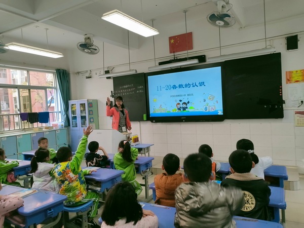 一年級(jí)備課組的曾彩鳳老師以執(zhí)教課例《11—20各數(shù)的認(rèn)識(shí)》拉開本次研討活動(dòng)的序幕。曾老師將整個(gè)單元的知識(shí)點(diǎn)串成一條線,讓學(xué)生利用計(jì)數(shù)器數(shù)一數(shù)、撥一撥回顧數(shù)數(shù)、讀數(shù)、寫數(shù);借助直尺復(fù)習(xí)數(shù)序、數(shù)的組成;創(chuàng)設(shè)開火車口算比賽,提高學(xué)生學(xué)習(xí)興趣。