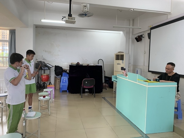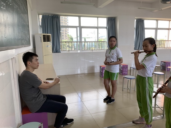 陳虹崗副校長帶領教務處、音樂科組根據學生實際,制定了詳細的考核方案,確保了考核活動的順利進行??己瞬捎脽o伴奏形式進行,音樂教師擔任評委,根據同學們吹奏時的氣息、節(jié)奏、音準、姿勢等方面表現(xiàn),對其竹笛水平進行了全面考察。
