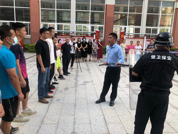 活動上,劉裕副校長作動員講話。劉副校長強調(diào),校園安全工作十分重要,直接影響到學(xué)校的工作秩序和工作質(zhì)量,全體教職工需要強化意識,以實際行動做好表率。全體教職工在陳教官的指導(dǎo)下,認真學(xué)習(xí)了防暴器械的構(gòu)造、性能等基本常識;初步掌握了使用防暴器械的動作要領(lǐng),為迅速處置突發(fā)事件奠定了良好的基礎(chǔ)。