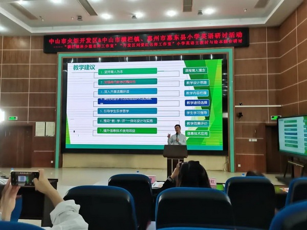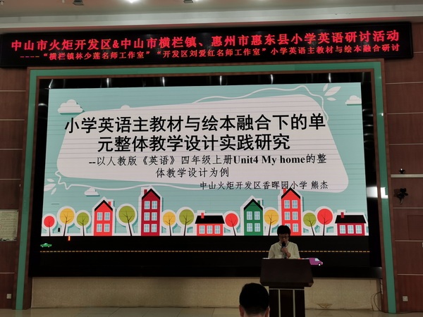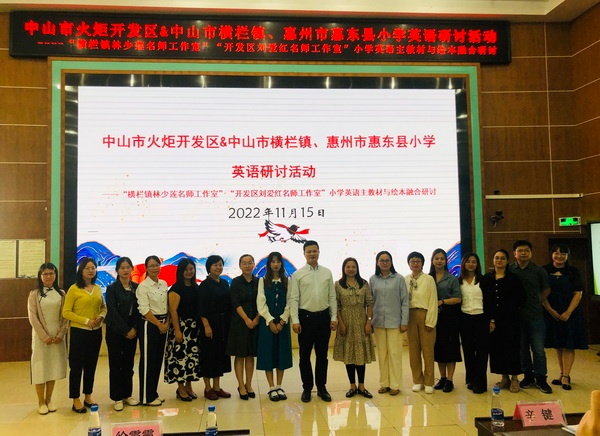 為推動全口徑全方位融入式對口幫扶惠州基礎教育高質量發(fā)展,進一步促進小學英語教師專業(yè)成長,提高英語教育教學質量,加強主教材與繪本相融合的教學能力,11月15日下午,中山市開發(fā)區(qū)組團聯(lián)合橫欄鎮(zhèn)、惠州市惠東縣開展小學英語研討活動?;顒又鲿鲈O在開發(fā)區(qū)香暉園小學報告廳,通過線上線下相結合方式舉行。中山市小學英語教研員辛鍵老師、惠東縣教師發(fā)展中心教研室溫玉雪老師、開發(fā)區(qū)教育事務指導中心徐霞霞副校長、開發(fā)區(qū)香暉園小學歐陽祝棣校長、開發(fā)區(qū)香暉園小學陳虹崗副校長、開發(fā)區(qū)小學英語中心教研組組長和名師工作室主持人劉愛紅老師、橫欄鎮(zhèn)名師工作室主持人林少蓮老師,以及開發(fā)區(qū)組團、橫欄鎮(zhèn)、惠東縣小學英語教師參加了本次活動。