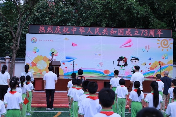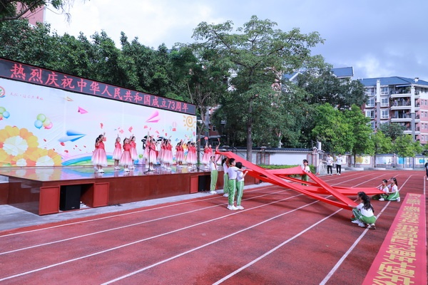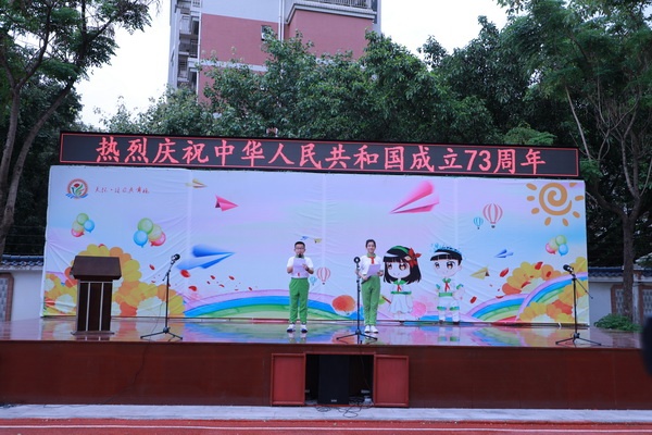 盛世中國(guó),普天同慶。9月30日上午,為慶祝中華人民共和國(guó)成立73周年,弘揚(yáng)愛國(guó)主義精神,香暉園小學(xué)全體師生齊聚操場(chǎng),開展了“喜迎二十大 奮進(jìn)新征程”慶祝國(guó)慶主題活動(dòng)。
