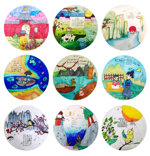 活動(dòng)前,開發(fā)區(qū)香暉園小學(xué)美術(shù)教師認(rèn)真?zhèn)湔n,為每個(gè)年級和興趣班精心挑選教學(xué)內(nèi)容。一、二年級的同學(xué)用紙盤繪畫的形式表現(xiàn)詩詞中自然的活力與生機(jī);三、四年級的同學(xué)采用圓型構(gòu)圖,把圓滿之美以裝飾畫的形式展現(xiàn);五、六年級的同學(xué)從語文課本古詩著手,方寸之間直抒詩意之美。陶藝和書法興趣班的同學(xué)們合作以釉彩陶藝為形式進(jìn)行書法和繪畫,燒制出美妙和諧的詩畫作品。