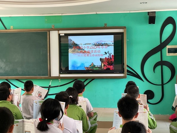 活動前,各年級音樂老師認真選擇教學內容,精心備課、磨課。結合教唱、手勢舞、朗誦、表演唱等多種教學方式,提升學生參與課堂活動的積極性。通過古詩詞歌曲傳唱,傳承經典文化,激發(fā)學生的愛國情懷,用行動為創(chuàng)建文明城市添彩。