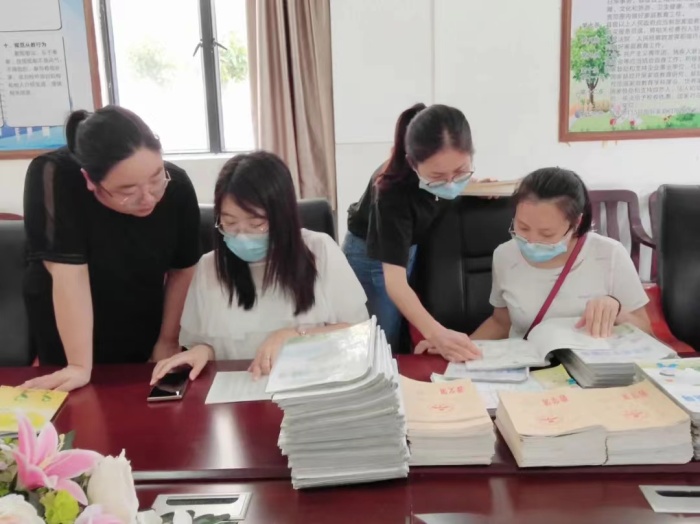 兩校教師在會議室一起翻閱了新苗學校四年級的學生作業(yè)。火炬二小教師通過查閱學生的《學習輔導》、作文本,以及數(shù)學和英語學科的部分作業(yè),對新苗學校作業(yè)設計和批改要求有了初步的了解。孩子們一摞摞整齊干凈的作業(yè)本、認真工整的書寫和老師們用心細致的作業(yè)批閱得到了二小教師的肯定。特別是看到四年級學生歸類整理的數(shù)學和英語思維導圖后,二小的老師們贊不絕口,稱贊這種個性化的作業(yè)是落實“雙減”政策的有效途徑,同時對于訓練學生思維能力,培養(yǎng)動手能力、創(chuàng)作能力都起到了很好的作用。在郭主任的陪同下,二小教師還觀摩了一節(jié)體育課,李秋雄老師也陪同二小的綜合科組長巡查了課堂,老師們連聲感慨新苗的變化真大。