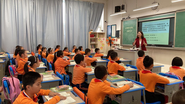 優(yōu)秀骨干教師譚紅梅老師激情彭拜地講解古希臘著名神話故事《普羅米修斯》,四(4)班的學(xué)生們?nèi)褙炞⒌馗形蛑适轮械娜松腔?。?yōu)秀骨干教師杜娟老師和五(1)班的同學(xué)們一起開展“標(biāo)點(diǎn)符號之旅”游戲,將語文知識貫穿于故事之中,寓教于樂,讓人印象深刻!二(3)班的語文課堂上,優(yōu)秀青年教師童心和學(xué)生們一起汲取知識,滋養(yǎng)心靈的美好!優(yōu)秀骨干教師劉美娟老師在四(5)班執(zhí)教《My body》,通過游戲與學(xué)生們現(xiàn)場互動,課堂靈動活潑,充滿童趣!優(yōu)秀骨干教師吳小梅老師在五(9)班的課堂上,帶領(lǐng)孩子們認(rèn)識《Map of China》,從小認(rèn)識祖國各地,長大建設(shè)大好河山!家長們則安靜地坐在教室后方,和學(xué)生們一起聆聽并參與課堂。