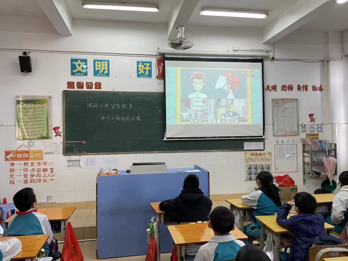 學(xué)校還利用校園廣播、國旗下講話、校園LED、學(xué)校宣傳欄、班級宣傳角、班級微信群等向師生宣講相關(guān)的交通安全知識。