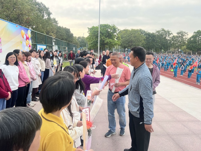 最后,邀請(qǐng)全體女教師上臺(tái),由學(xué)校的男教師手捧鮮花送給每一位女教師,并祝她們節(jié)日愉快!一支支鮮艷的花朵映襯著一張張幸福的笑臉,和諧溫馨的氣氛充盈著整個(gè)校園。