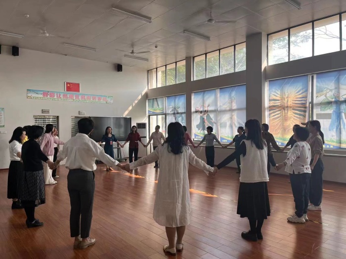 3月7日下午,學(xué)校工會(huì)組織全體女教師在舞蹈室開(kāi)展心理團(tuán)建活動(dòng)。隨著舒緩的音樂(lè),女教師們跟著心理老師做健康操,身心得到放松。