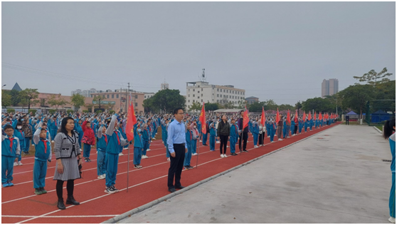 首先舉行了莊嚴(yán)的升旗儀式,全體師生排列著整齊的隊(duì)伍,精神抖擻,意氣風(fēng)發(fā)。陳校長(zhǎng)講了《2023年春季開(kāi)學(xué)思政第一課》,浪網(wǎng)小學(xué)始終將思政課建設(shè)擺在基礎(chǔ)教育改革發(fā)展的重要位置,構(gòu)筑“五育并舉”的育人體系,落實(shí)立德樹(shù)人根本任務(wù),著力培養(yǎng)德智體美勞全面發(fā)展的社會(huì)主義建設(shè)者和接班人。陳校長(zhǎng)激勵(lì)同學(xué)們要志存高遠(yuǎn),胸懷家國(guó),有一顆愛(ài)國(guó)愛(ài)校之心,嚴(yán)于律己,修身養(yǎng)性,成為“大寫(xiě)的人”,努力拼搏,勇攀高峰,做一個(gè)勤奮的追夢(mèng)人。鼓勵(lì)同學(xué)們奮勇拼搏、腳踏實(shí)地,一步一個(gè)腳印,豐富自己的精神世界,爭(zhēng)做新時(shí)代的先鋒少年、逐夢(mèng)少年。同時(shí)勉勵(lì)全體師生乘風(fēng)破浪,勇毅前行,用激情與智慧續(xù)寫(xiě)發(fā)展新篇,攜手共創(chuàng)浪網(wǎng)小學(xué)新的輝煌。