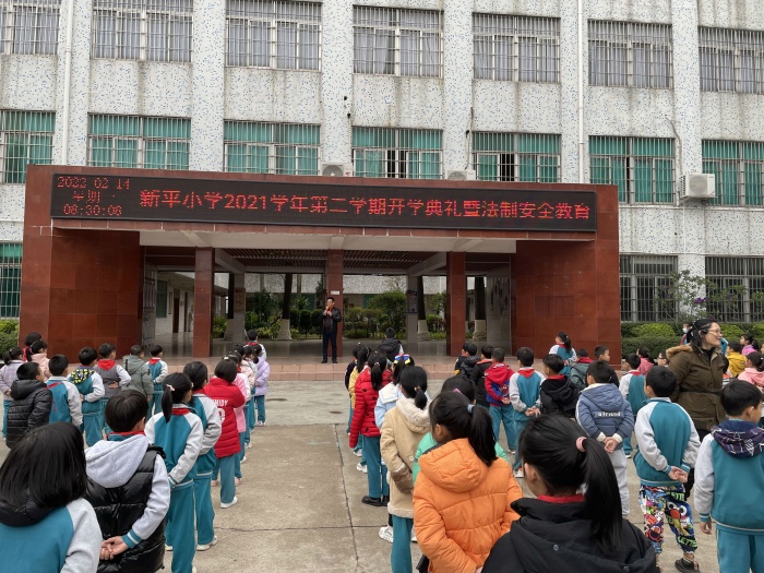 新學期,新起點,新氣象。進入校園,首先映入眼簾的是老師和禮儀隊員們的笑臉,2022年2月14日,新平小學迎來了開學典禮。