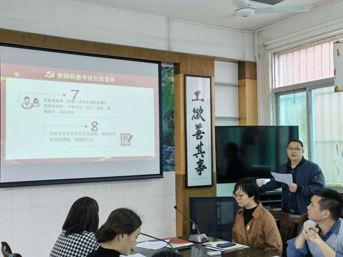 最后,梁文輝校長以《中山市中小學(幼兒園)教師職業(yè)行為負面清單(試行)》為題開展了2023年春季開學教師師德師風教育專題講座。