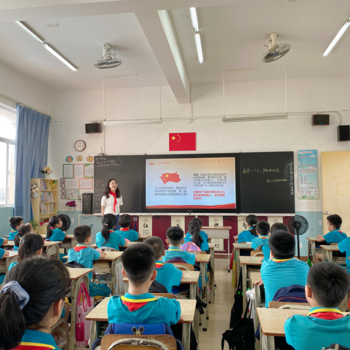 通過(guò)中隊(duì)輔導(dǎo)員的介紹,全體隊(duì)員了解到國(guó)旗、黨旗、軍旗、隊(duì)旗的不同含義和重要寓意。并知道了中國(guó)共產(chǎn)黨的生日,認(rèn)識(shí)了黨的偉大領(lǐng)袖,了解了黨的輝煌成就。