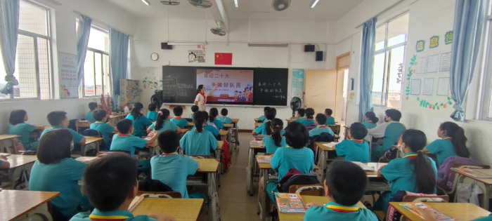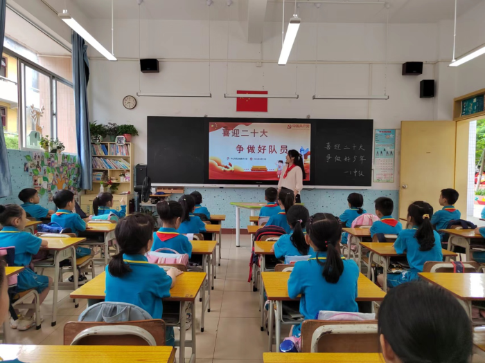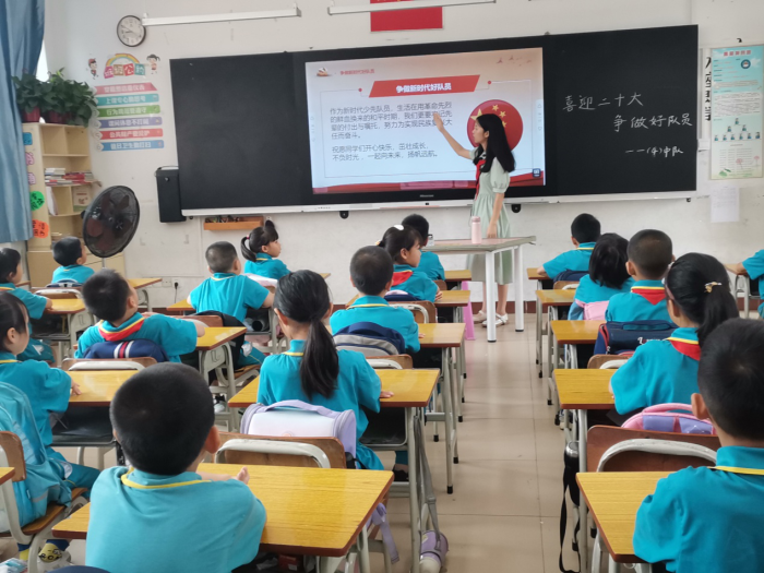 隊(duì)會(huì)上,中隊(duì)輔導(dǎo)員提問(wèn):關(guān)于二十大你有什么想問(wèn)的嗎?隊(duì)員們帶著疑問(wèn)展開(kāi)了探尋,小隊(duì)成員在組里激烈討論,隊(duì)員們還將問(wèn)題匯總成了小報(bào),各小隊(duì)分工明確,熱情高漲。通過(guò)自己提出問(wèn)題,解決問(wèn)題的方法,隊(duì)員們了解了二十大的召開(kāi)時(shí)間、召開(kāi)地點(diǎn)、為什么要召開(kāi)二十大,以及二十大的重要意義。