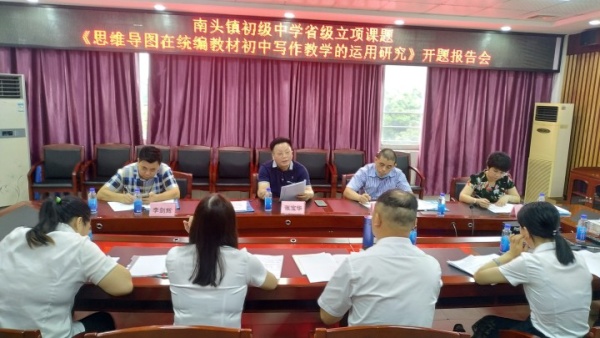 5月27日上午,南頭鎮(zhèn)初級中學(xué)為語文科組申報的省級立項課題《思維導(dǎo)圖在統(tǒng)編教材初中寫作教學(xué)的運用研究》舉行了開題儀式。學(xué)校領(lǐng)導(dǎo)高度重視,盧新泉校長出席了立項開題會,活動邀請到中山市教研室張寶華老師,南頭鎮(zhèn)教育事務(wù)指導(dǎo)中心的李劍輝老師,小欖鎮(zhèn)第一中學(xué)高開洪老師,古鎮(zhèn)鎮(zhèn)曹步初級中學(xué)余亞帶老師以及課題組全體成員悉數(shù)出席此次活動。