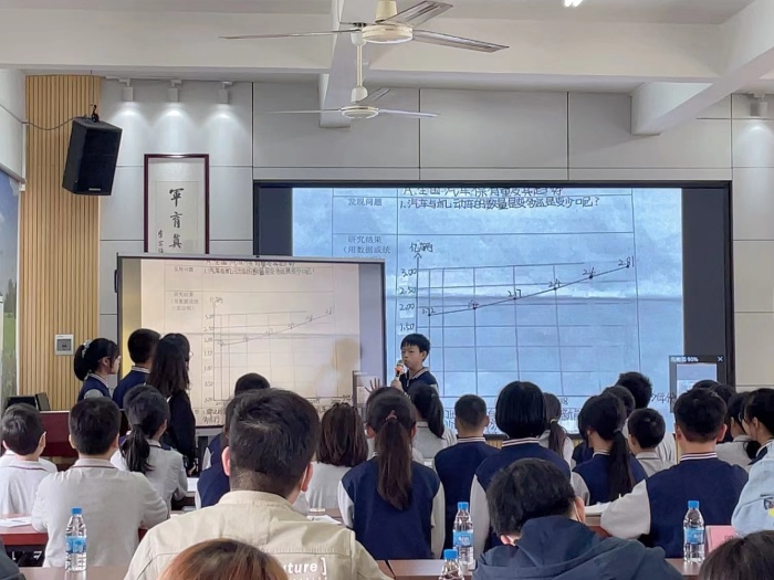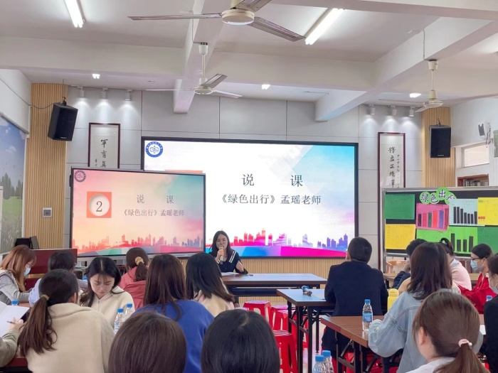 活動(dòng)開(kāi)始,將軍小學(xué)孟瑤老師與六(4)的孩子們帶來(lái)研究課例——《綠色出行》。孟老師的教學(xué)設(shè)計(jì)分為課前問(wèn)題前置性探究、課中自主探究、課后切合生活探究三部分。在課堂上,孟老師通過(guò)小組交流探究、師徒合作等方式讓學(xué)生充分感受到綠色出行的重要性,培養(yǎng)科學(xué)的生活態(tài)度,樹(shù)立崇尚綠色出行的公民責(zé)任意識(shí)。本節(jié)課,孟老師將數(shù)學(xué)所具有的文化特征浸潤(rùn)于學(xué)生的心田,使其成為學(xué)生數(shù)學(xué)學(xué)習(xí)過(guò)程中的動(dòng)力源泉,也讓數(shù)學(xué)教學(xué)突破了傳統(tǒng)模式,使平淡的數(shù)學(xué)課堂鮮活了起來(lái),引人入勝,激發(fā)起學(xué)生濃厚的學(xué)習(xí)興趣。