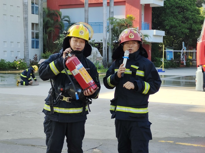 接著,南頭消防大隊的消防隊員結(jié)合校園消防工作的特點,用通俗易懂的語言為師生們講解了學校內(nèi)如何預(yù)防火災(zāi)、遇到緊急情況時應(yīng)該如何處理、逃生等與同學們?nèi)粘W習生活密切相關(guān)的消防知識。隨后,全校師生觀看了消防滅火演練以及高空營救的演習。其中,消防隊員就如何正確使用滅火器進行了現(xiàn)場操作示范,并隨機抽查幾名教師代表親身體驗了滅火器的正確使用方法,通過“手把手”的交流學習,有效提高了師生撲救初期火災(zāi)的能力。