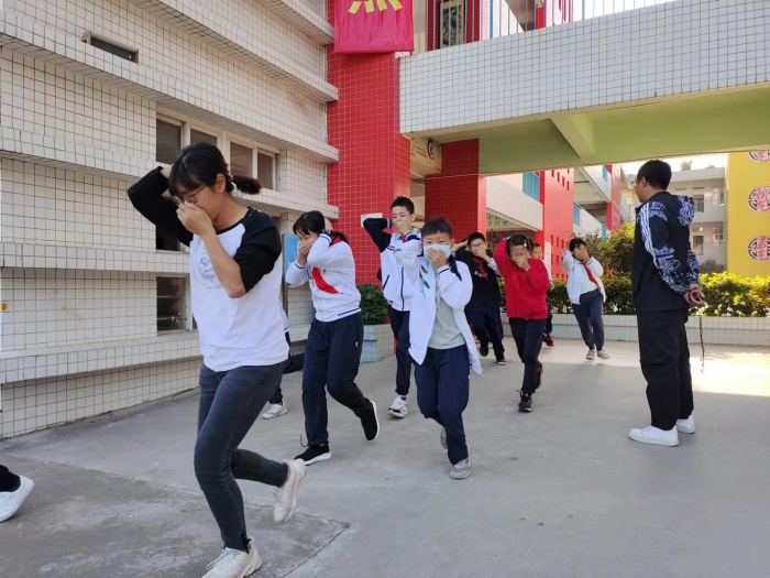 下午第一節(jié)課后,隨著校園內(nèi)安全警報的響起,演練開始了。老師和學生迅速作出了反應(yīng),各班老師迅速按緊急預(yù)案的疏散線路帶領(lǐng)孩子彎著腰,一只手捂住口鼻,一只手捂住頭,快速撤離教學樓,疏散到指定的空曠位置上。整個過程嚴肅認真、井然有序,用時一分多鐘。