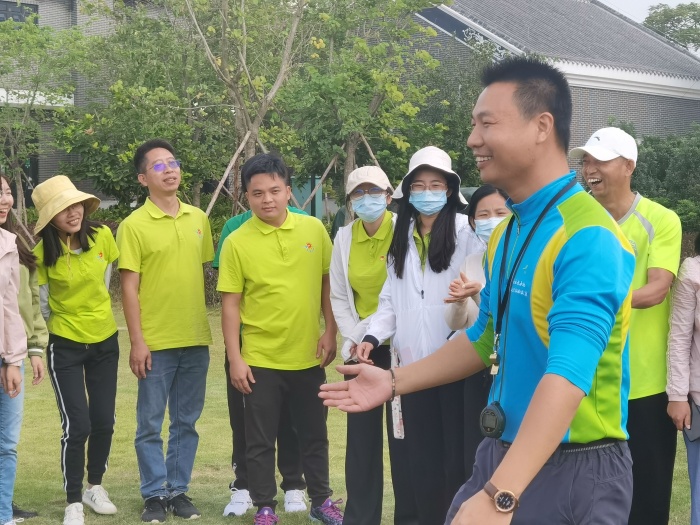 拓展活動的第三站,是翠亨國家濕地公園。在這里,老師們在團隊教練的帶領(lǐng)下進(jìn)行了本次活動的主要任務(wù)——戶外拓展。教練先是讓老師們圍成了一個大圓圈,進(jìn)行“搶紅包”的小游戲。在游戲過程中,老師們根據(jù)教練的指令,通過“抱團”的形式湊成了教練規(guī)定的錢數(shù)。整個過程歡聲笑語不斷,最后受懲罰的老師們也開心地接受了小懲罰,因為大家不在乎輸贏,只享受團隊合作過程中的樂趣。