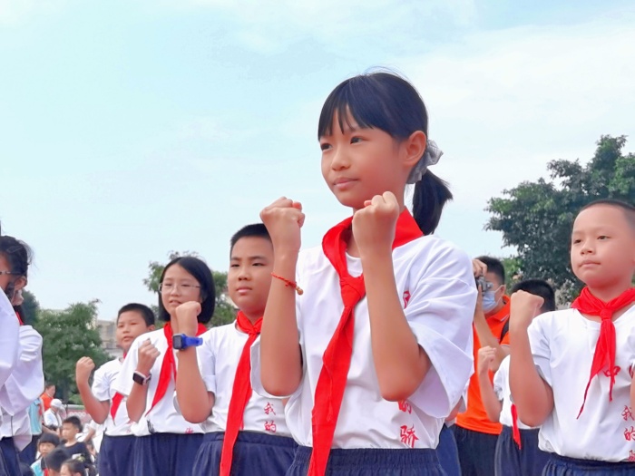 接下來,是全校師生奏唱國歌。在莊嚴(yán)的升旗儀式結(jié)束后,民安小學(xué)嚴(yán)玲珍校長為運(yùn)動會致開幕詞,她表示這是一場意義非凡的展演,正少年,敬英雄。致敬英雄,就要崇尚英雄,就要學(xué)習(xí)英雄。同時,她希望同學(xué)們承擔(dān)起民族賦予我們的使命,致敬英雄,少年有為,青春無悔,年少自強(qiáng),并在運(yùn)動會上大放異彩。隨后運(yùn)動員代表陳靜雯同學(xué)發(fā)言,裁判員代表陳景隆老師宣誓后,南頭鎮(zhèn)教育和體育事務(wù)中心主任謝桂華宣布運(yùn)動會正式開始。