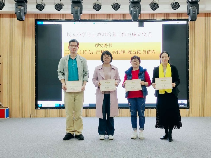 活動伊始,教導處盧麗萍主任宣布了骨干教師工作室和師徒結(jié)對名單。本次共成立4個骨干教師工作室,分為成長組和青年組。成長組由民安小學嚴玲珍校長主持,青年組則分別由骨干教師吳釗和、黃倩玲、陳雪花主持。其余則是新秀組,由14組師徒結(jié)對組成。骨干教師們帶領(lǐng)幾十名教師組成工作室團隊,為民安小學的發(fā)展聚力賦能。