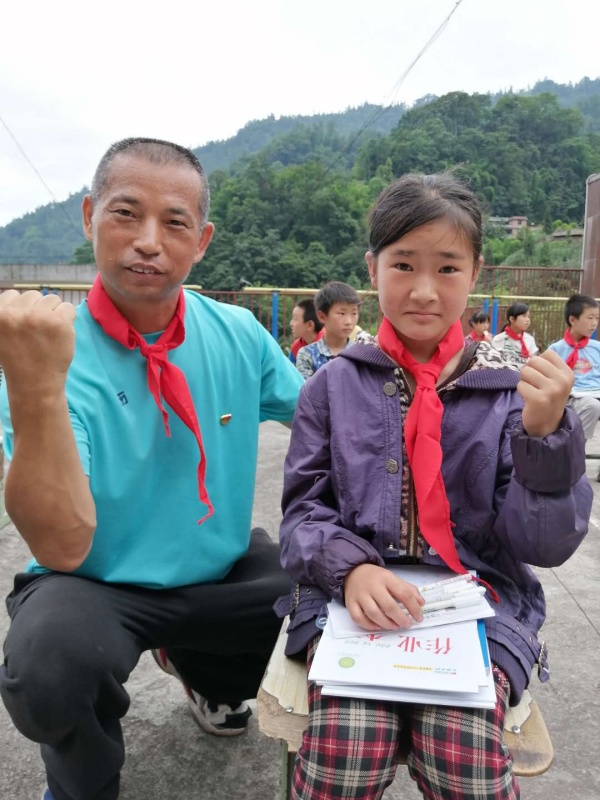 7月7日上午8:00,在南頭鎮(zhèn)支教隊伍、當(dāng)?shù)匦W(xué)行政及各班班主任的組織下,黃坭小學(xué)受捐助的60名學(xué)生和家長在大會現(xiàn)場, 其他學(xué)生在各班教室參與了本次愛心捐助會。會議由莊嚴(yán)肅穆的升旗儀式開始,然后是由領(lǐng)導(dǎo)致辭。接下來愛心捐助會開始,先是由本次愛心捐助會的發(fā)起人,民安小學(xué)苗華林老師進(jìn)行講話,解讀中山兒童給綏江兒童的信。而后是愛心捐贈儀式,內(nèi)容包括武術(shù)隊30套武術(shù)T恤、30位品學(xué)兼優(yōu)學(xué)生的愛心獎勵、楊宗林的結(jié)對幫扶。接著,是由牟村小學(xué)的負(fù)責(zé)人為各支教老師頒發(fā)“獻(xiàn)愛心光榮證”。最后是由牟村小學(xué)的受助學(xué)生代表朗讀——“給中山愛心天使的感謝信”,受助的家長代表同時也表明了決心。