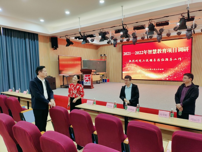 隨后,姜術(shù)俊副局長(zhǎng)一行來(lái)到學(xué)校報(bào)告廳,聽(tīng)取吳釗和副校長(zhǎng)作主題為“多技術(shù)融合項(xiàng)目”的建設(shè)工作匯報(bào)。吳校長(zhǎng)先是介紹了學(xué)校的信息化以及智慧課堂的建設(shè)情況,而后匯報(bào)了學(xué)校利用“智慧課堂”開(kāi)展課題研究以及學(xué)校教師參加省、市教學(xué)競(jìng)賽所取得的成果。姜術(shù)俊副局長(zhǎng)在調(diào)研后,針對(duì)學(xué)校提升信息化建設(shè)給予了指導(dǎo)性意見(jiàn)和建議。